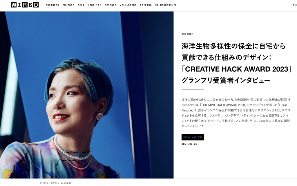 プロジェクトリードしたCoral RescueがWIRED Creative Hack Award 2023のグランプリを受賞した際の模様がPR timesに掲載。